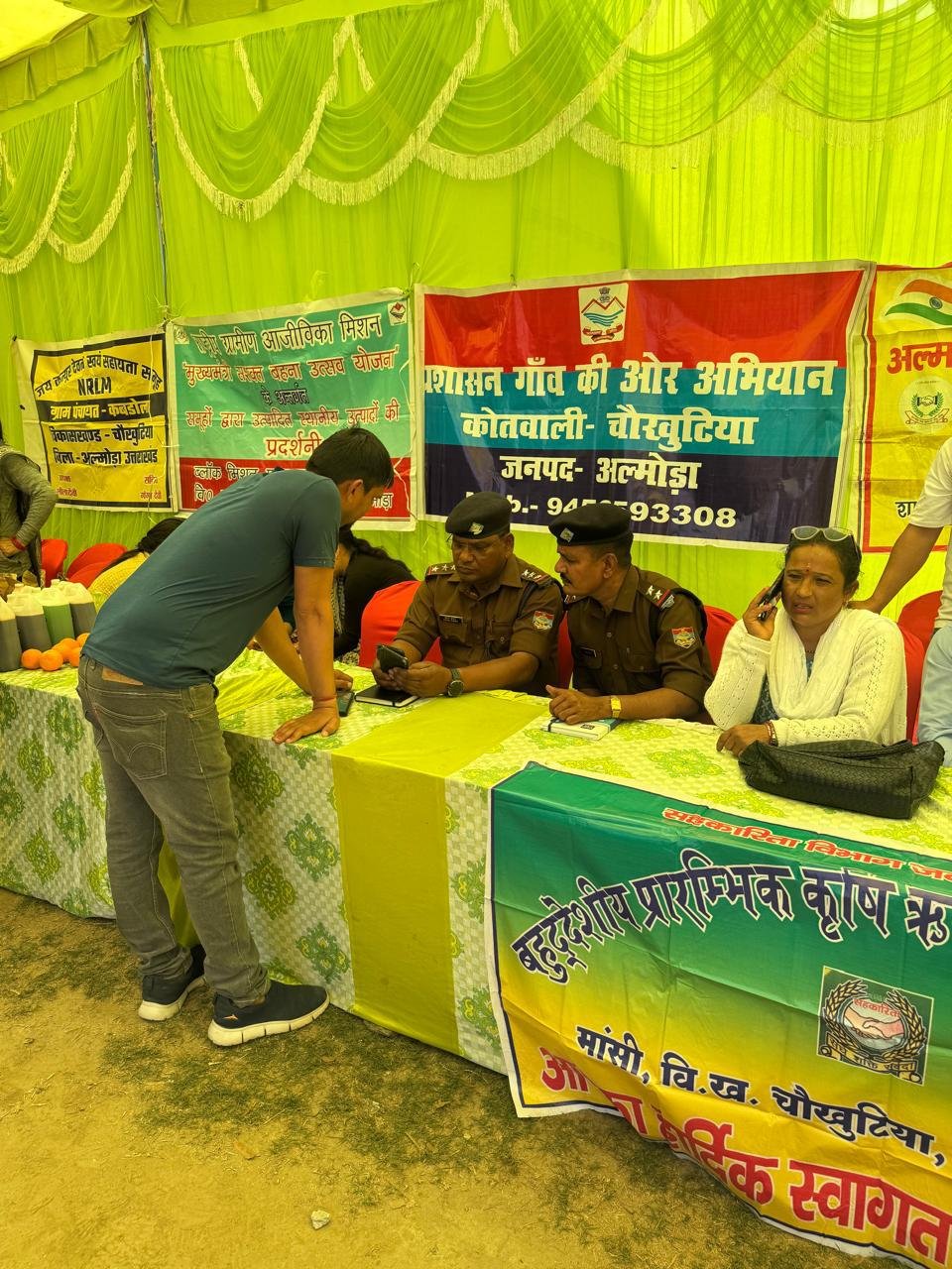 इसी क्रम में कोतवाली चौखुटिया पुलिस द्वारा भी अपना स्टॉल लगाकर आमजन की पुलिस से संबंधित समस्याओं एवं शिकायतों को सुना गया तथा उनके त्वरित समाधान हेतु आवश्यक कार्यवाही की गई। पुलिस टीम द्वारा शिविर में उपस्थित ग्रामीणों को साइबर अपराध से बचाव, महिला एवं बाल अपराध, किरायेदार सत्यापन, महिला सुरक्षा, नशे के दुष्प्रभाव तथा यातायात नियमों के संबंध में जागरूक किया गया। साथ ही लोगों से अपील की गई कि किसी भी प्रकार की संदिग्ध गतिविधि की सूचना तुरंत पुलिस को दें।
