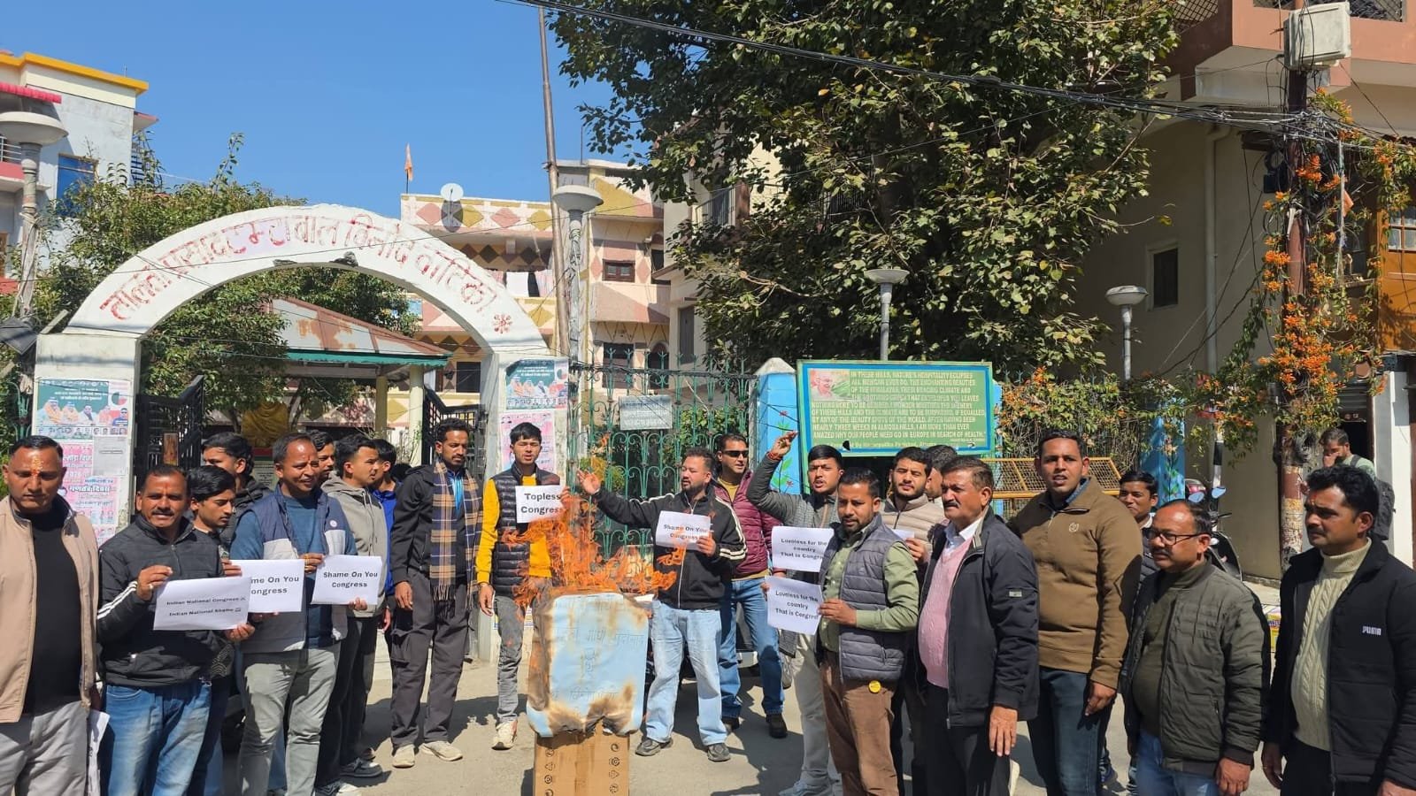 जिस पर आज शनिवार को आक्रोशित भाजयुमो कार्यकर्ताओं ने नगर के मालरोड स्थित चौघानपाटा में कांग्रेस का पुतला फूंक जमकर प्रदर्शन किया। इस दौरान भाजयुमो जिलाध्यक्ष पंकज भाकुनी ने कहा कि दिल्ली में एआई इम्पैक्ट समिट के दौरान कांग्रेस कार्यकर्ताओं द्वारा किए गए अर्धनग्न विरोध प्रदर्शन अत्यंत दुर्भाग्यपूर्ण, निंदनीय और देश की वैश्विक छवि को धूमिल करने वाला है। उन्होंने कहा कि राहुल गांधी के इशारे पर राष्ट्र की गरिमा के खिलाफ एक सोची-समझी साजिश की गई है। उन्होंने कहा कि राहुल गांधी और पूरी कांग्रेस पार्टी को देश से माफी मांगनी चाहिए।