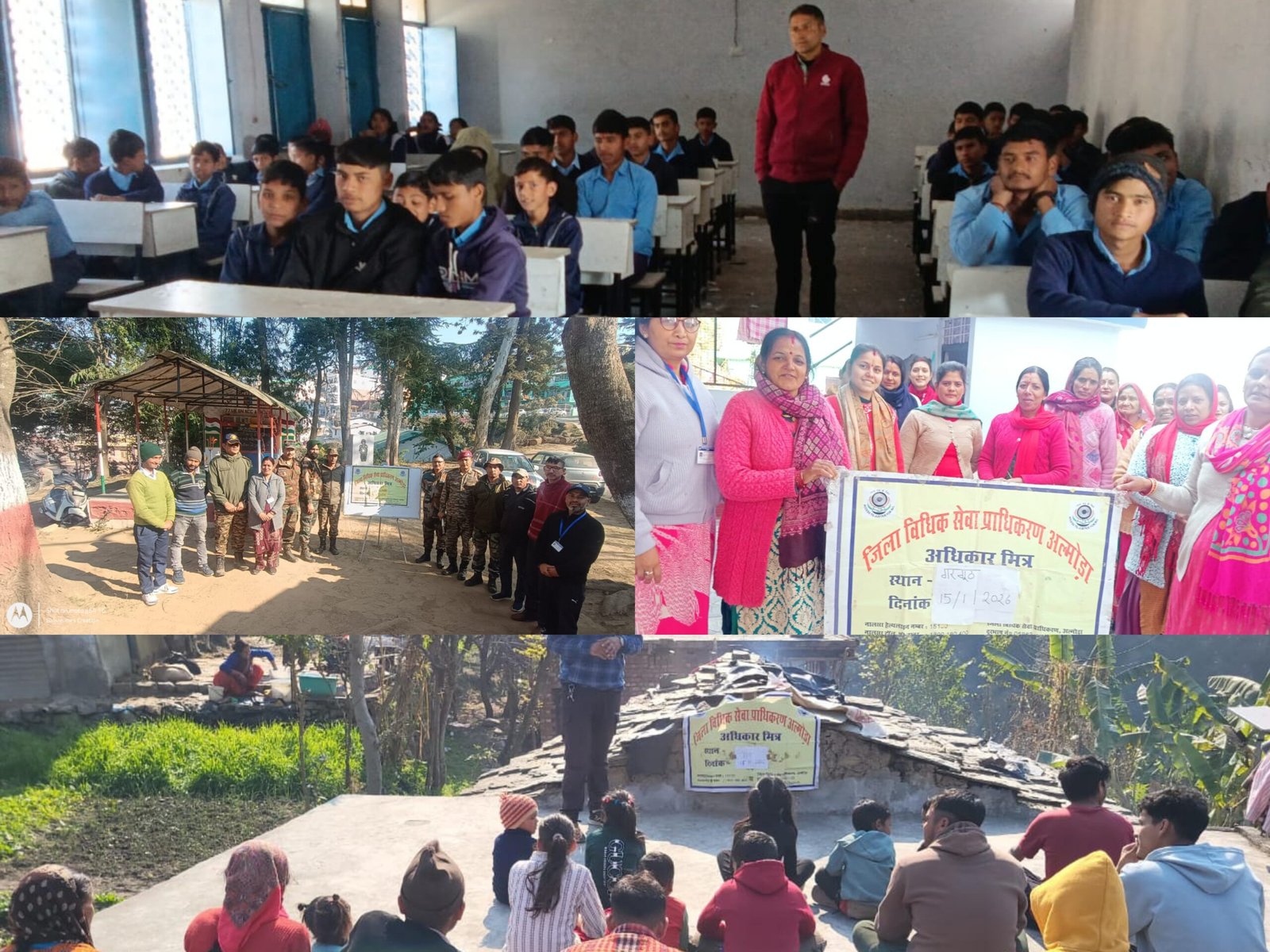 अल्मोड़ा से जुड़ी खबर सामने आई है। अल्मोड़ा में सचिव,जिला विधिक सेवा प्राधिकरण अल्मोड़ा के आदेशानुसार दिनांक -15/01/2026 को “सैनिक दिवस” के उपलक्ष्य में अधिकार मित्र ममता नेगी, पूनम पाण्डे, ममता तिवारी, किरन आर्या, अनीता आर्य, बीना देवी, दीपा चौधरी ,हेमा लोहनी, शोभा लोहनी, सोनिया गोस्वामी ,मनोज गिरी, प्रकाश राम ,नीमा कोहली, कुसुम, किरन ,रावत कमला रंजीता, दीप चंद्र, पंकज भगत,प्रियंका बहुगुणा आदि द्वारा वीर सैनिक व उनके परिवार के मध्य ग्राम प्रा0 वि0 बटुलिया, नगर पंचायत द्वाराहाट, कोटसारी, चौना, सानरा ,विधापुर ,हनुवाल, पूनकोट, चनदौव, आदि में विधिक जागरूकता शिविर, नुक्कड़ नाटक व रैली का आयोजन किया गया।