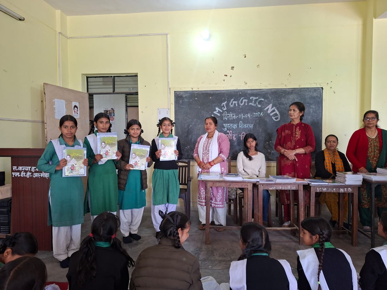 ​शैक्षणिक सत्र 2026-27 के प्रथम दिन विक्टर मोहन जोशी राजकीय कन्या इंटर कॉलेज, एन.टी.डी. में छात्राओं को निःशुल्क पाठ्य-पुस्तकें वितरित की गईं। यह कार्यक्रम जिला परियोजना अधिकारी, समग्र शिक्षा अल्मोड़ा और माध्यमिक शिक्षा उत्तराखंड, देहरादून के आदेशों के अनुपालन में आयोजित किया गया। नए सत्र की शुरुआत के अवसर पर विद्यालय में एक औपचारिक वितरण समारोह का आयोजन किया गया। इस दौरान कक्षावार छात्राओं को उनकी पाठ्य-सामग्री सौंपी गई।