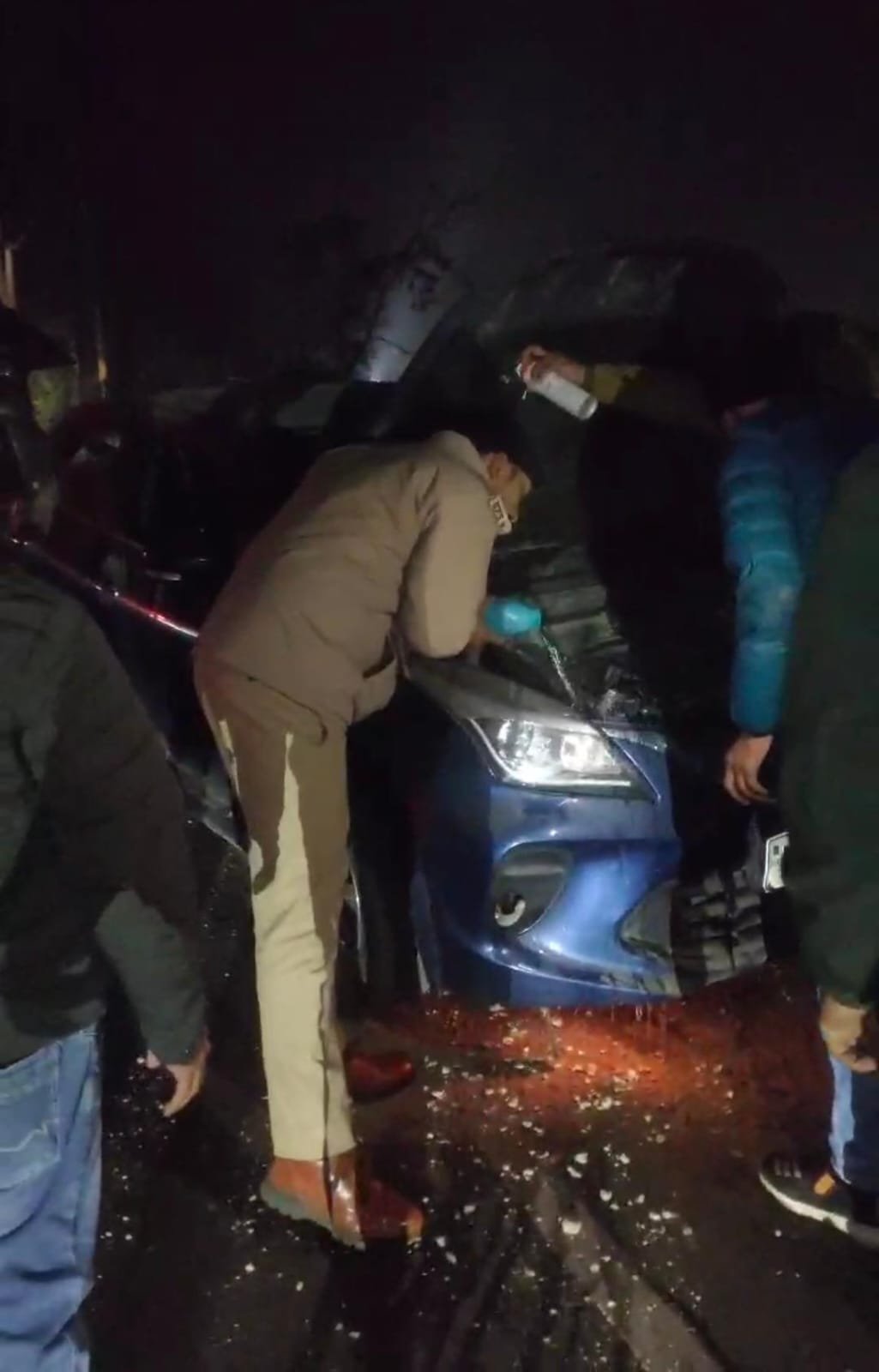 जिसे हल्द्वानी से भवाली की ओर जा रहे सीओ भवाली सुमित पांडे ने देखा। जिसके बाद सीओ भवाली सुमित पांडेय व ट्रैफिक पुलिस के कर्मचारियों की त्वरित कार्यवाही के कारण एक बलेनो कार में लगी आग को समय रहते बुझा लिया गया। साथ ही उसमें सवार 02 लोगों को सुरक्षित बाहर निकाला गया। जिससे एक बड़ी अनहोनी टल गई।