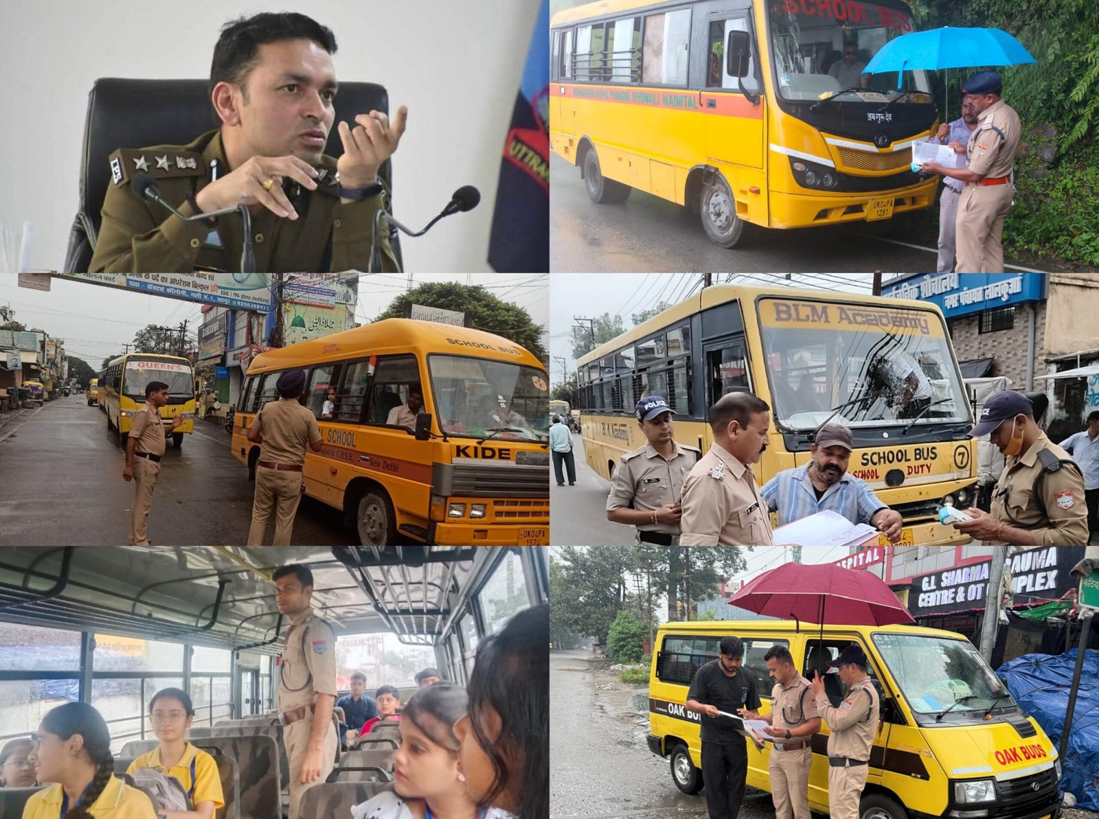 इसी क्रम में आज दिनाँक 29/08/2025 को डॉ0 जगदीश चंद्रा एसपी क्राइम/यातायात नैनीताल के पर्यवेक्षण में जनपद के सभी थाना व चौकी प्रभारियों द्वारा पुलिस टीम के साथ सुबह से ही स्कूल बसों की गहन चैकिंग अभियान चलाया गया। चैकिंग के दौरान जनपद में 340 स्कूल वाहनों को चैक किया गया जिनमें 313 फिट एवं 27 वाहनों में निम्न अनियमितताएँ पाई गई, जिनके विरुद्ध कार्यवाही की गई है।