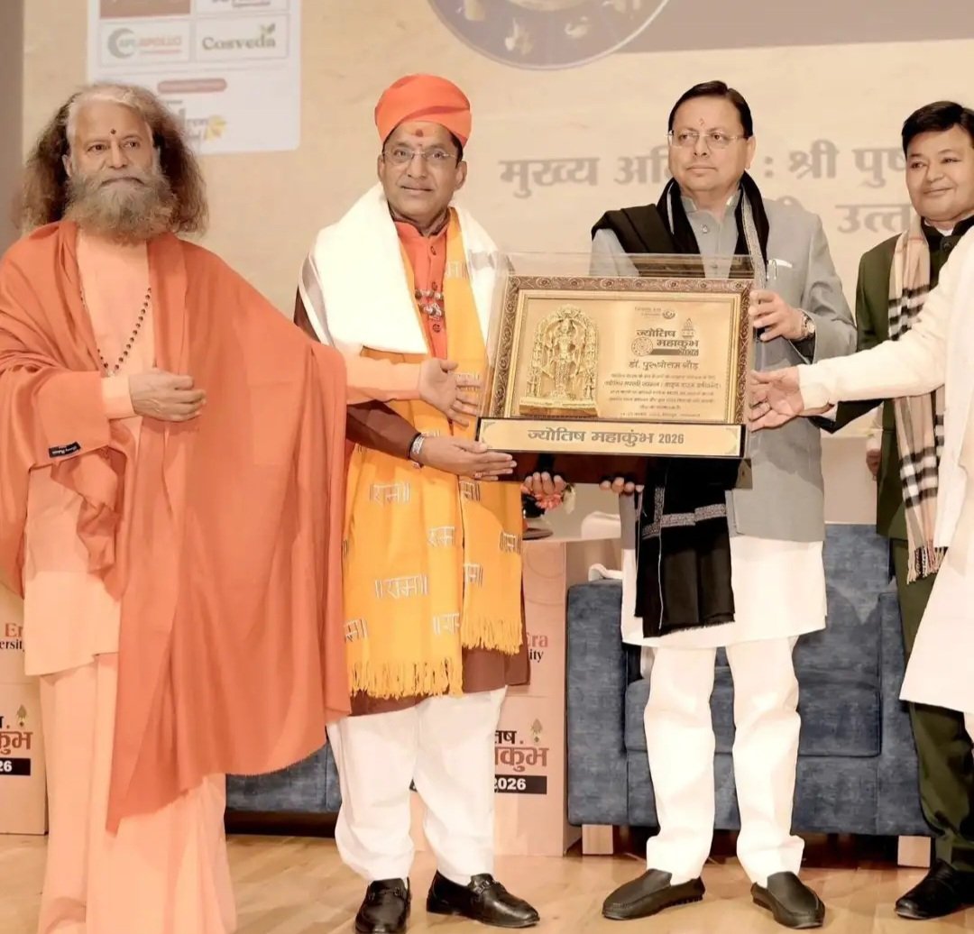 इस समारोह में ज्योतिष महाकुंभ में वैदिक ज्योतिष के क्षेत्र में ज्योतिषाचार्य डॉ. पंडित पुरुषोत्तम गौड़ को सम्मानित किया गया है। मीडिया रिपोर्ट्स के मुताबिक उन्हें ज्योतिष तपस्वी सम्मान (लाइफ टाइम अचीवमेंट अवार्ड) से सम्मानित किया गया। समारोह में डॉ. गौड़ के 35 वर्ष से अधिक समय से ज्योतिष, अध्यात्म और जन कल्याणकारी कार्य को राष्ट्रव्यापी सराहना मिली। प्रदेश के सीएम पुष्कर सिंह धामी, ग्राफिक एरा विश्वविद्यालय के संस्थापक डॉ. कमल घनशाला, परमार्थ निकेतन आश्रम, ऋषिकेश के अध्यक्ष स्वामी चिदानंद सरस्वती ने यह सम्मान प्रदान किया।