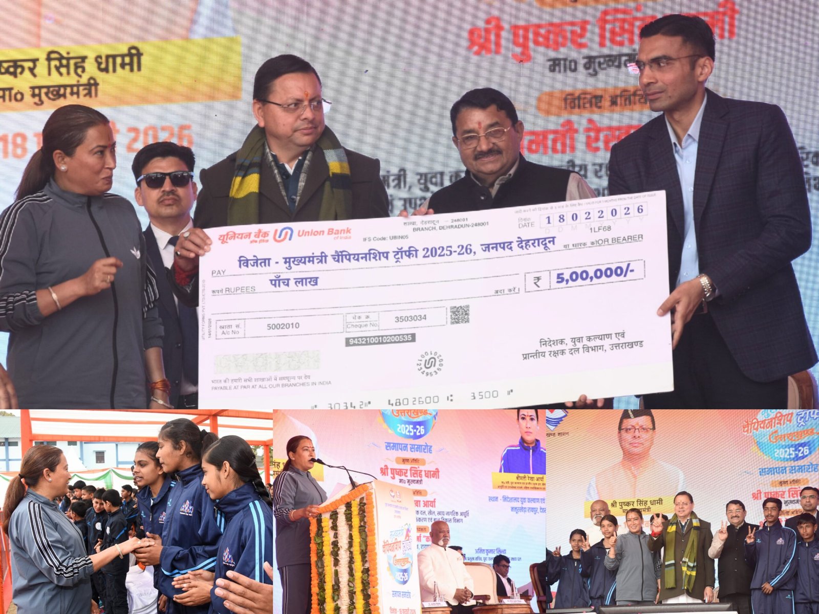जिसमें विजेता टीम को प्रदेश के मुख्यमंत्री पुष्कर सिंह धामी और कैबिनेट मंत्री रेखा आर्या ने ट्रॉफी एवं 5 लाख रुपये का चेक देकर सम्मानित किया। इस अवसर पर मुख्यमंत्री पुष्कर सिंह धामी ने कहा कि इस वर्ष प्रतियोगिता को नए प्रारूप में आयोजित किया गया, जो न्याय पंचायत स्तर से शुरू होकर विधानसभा और संसदीय क्षेत्र स्तर होते हुए राज्य स्तर तक पहुंची। उन्होंने कहा कि इस पहल से प्रदेश को नए चैंपियन मिले हैं और ग्रामीण क्षेत्रों की प्रतिभाओं को बड़ा मंच मिला है। मुख्यमंत्री ने यह भी बताया कि पदक विजेता खिलाड़ियों को सरकारी नौकरियों में 4 प्रतिशत आरक्षण का लाभ मिलेगा, जिससे युवाओं का मनोबल बढ़ेगा।