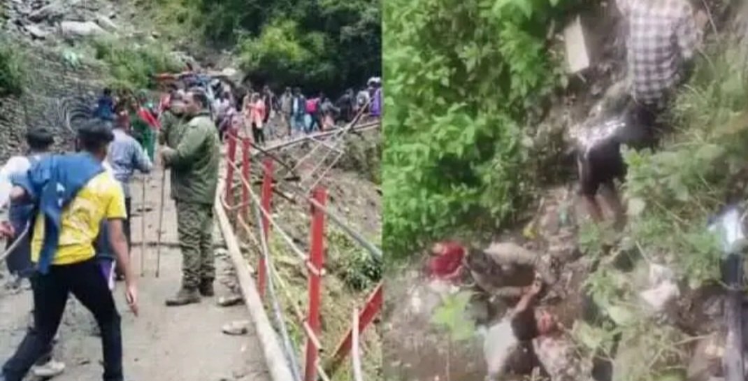 मीडिया रिपोर्ट्स के मुताबिक पहाड़ी से अचानक भारी मलबा गिरने के कारण पांच मजदूर इसकी चपेट में आ गए और गहरी खाई में जा गिरे। इस हादसे में दो लोगों नितिन कुमार पुत्र रावेल सिंह जिला डोडा जम्मू कश्मीर (पालकी मजदूर) उम्र 18 वर्ष व चंद्रशेखर जिला डोडा जम्मू कश्मीर (पालकी मजदूर) की मौके पर ही मौत हो गई। वह तीन संदीप कुमार पुत्र दया कृष्णा ग्राम गली तहसील जिला डोडा जम्मू (पालकी मज़दूर ), आकाश चितरीय पुत्र दामोदर दास निवासी भावनगर गुजरात, नितिन मन्हास पुत्र मनजीत जिला डोडा जम्मू (पालकी मजदूर ) गंभीर रूप से घायल हैं। दोनों मृतक जम्मू निवासी थे जो डंडी-कंडी संचालन का काम करते थे। स्थानीय प्रशासन और एसडीआरएफ की टीम द्वारा रेस्क्यू अभियान चलाया गया। घायलों को खाई से निकालकर प्राथमिक उपचार के लिए सुरक्षित स्थानों पर भेजा गया।